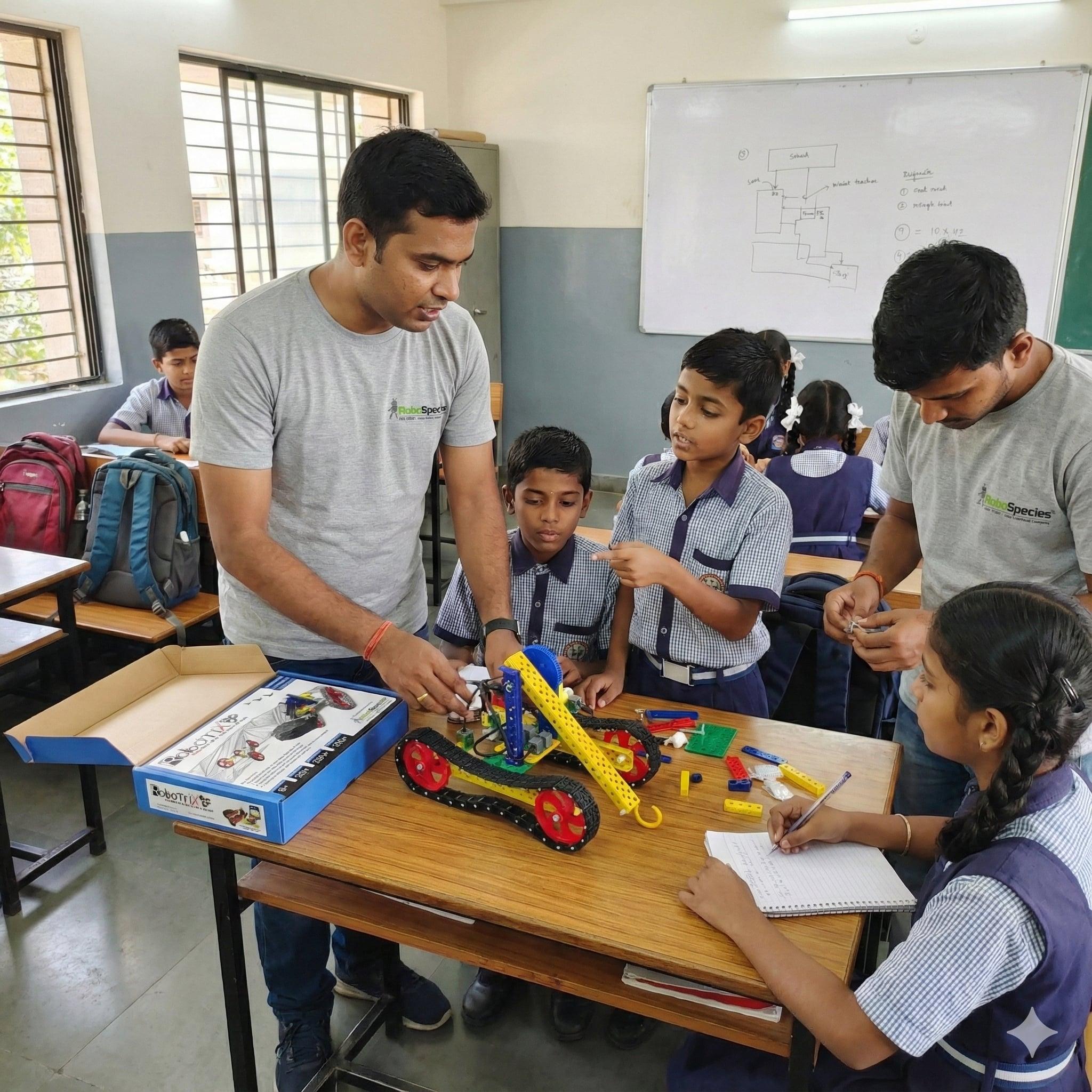 RoboSpecies is one of the best robotics companies in Pune, which is backed by the 12 years of expertise that focuses on creating innovative hands-on learning spaces for schools. We specialise in designing and building complete and ready-to-use robotic lab setups. We provide robotics kits, tools, and structured learning content that allow the student to excel in robotics and AI. We focus on building skills that are ready for the growing future in robotics and AI. We integrate AI with robotics and coding to create comprehensive learning pathways. We provide planning, design, installation, training, and support to help the students learn and excel in the course.
