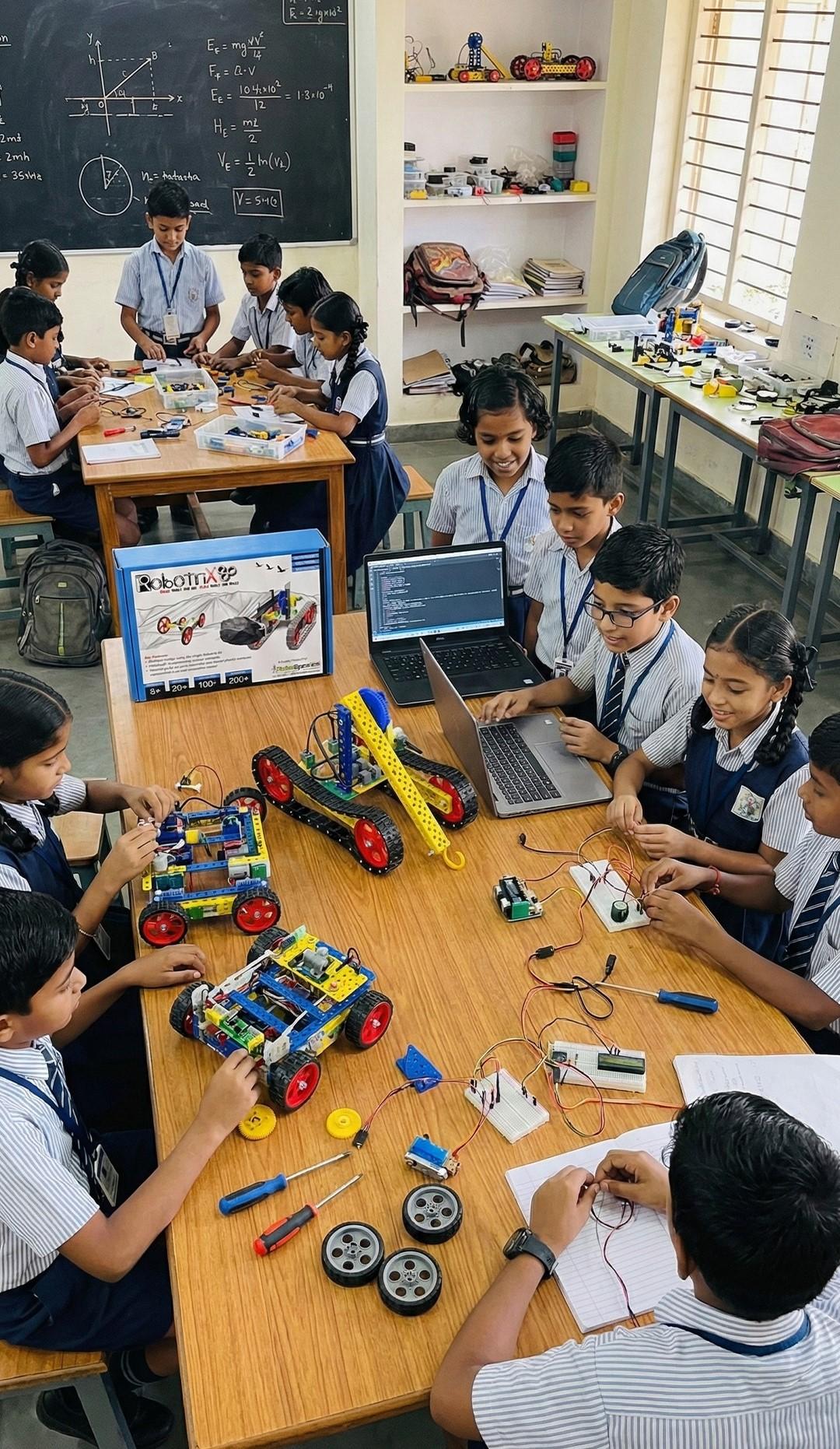 Setting up a functional and future-proof lab requires more than the purchase of a few kits. This involves detailed planning to meet the specific requirements of the robotics lab. The criteria are on space, safety, and integration of technology. A professional Robotics Lab Setup should consider adequate workspace which can be fulfilled with our Robotrix Electronica Kit and TinkerBot. This helps for both individual and group activities.