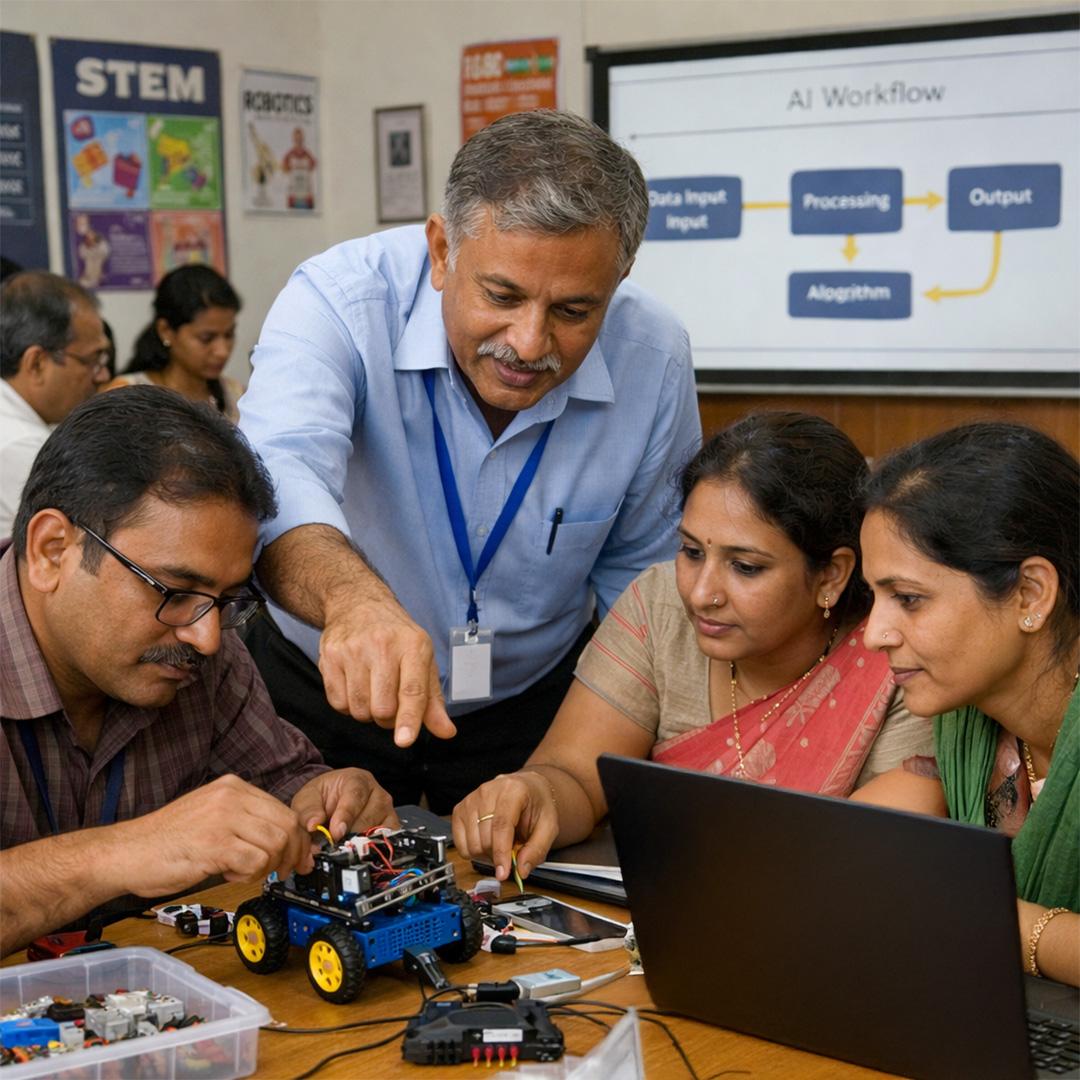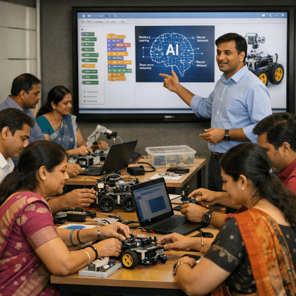The STEAM teacher training in robotics and coding is a program designed for teachers who want to spark students’ interest in robotics and STEM careers. This is a training program designed specifically for educators to teach the robotics and AI by integrating them into their curriculum.